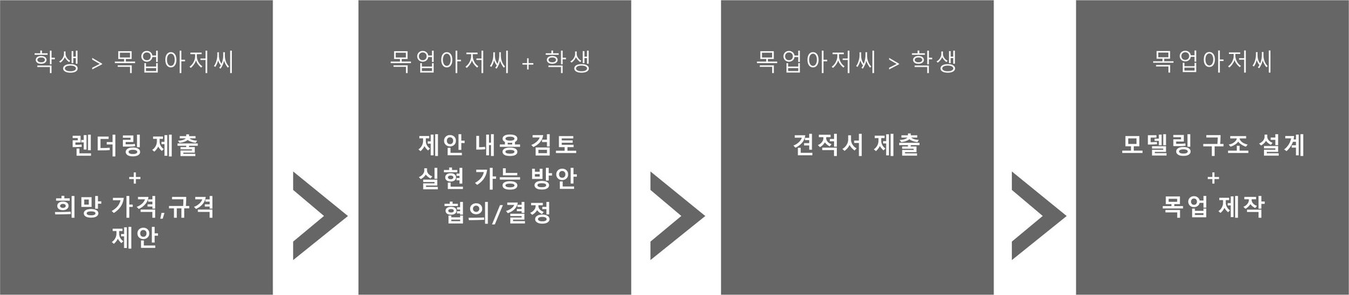 1. 학생 :  렌더링 4~6컷을 제출합니다.   희망하는 목업 규격(조립 상태의 가로*세로*높이 mm)과 목업 가격을 제안합니다.